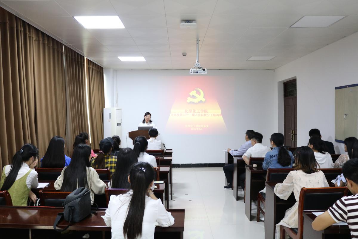 2019年5月10日晚上19:00,我院于化工楼W-310举行以“践行四讲四有,做合格党员”为主题的第六十一期分党课第二讲。学生党支部书记胡泊担任主讲人,全体分党校成员参加。