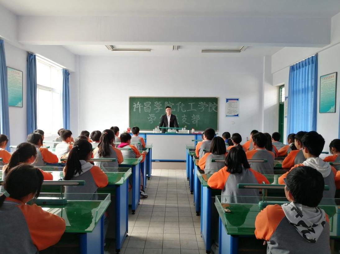 为了全面贯彻党的十九大精神,学习党的十九大报告内容,深入贯彻习近平总书记系列重要讲话精神和治国理政新理念、新思想、新战略,把握时代大势,回应实践要求。2019年4月26日,应许昌学院校党委要求,我院学生党支部组织第61期党校学员赴许昌学院附属中学,进行以“大学课堂走进中学”为主题的社会志愿服务活动。学生党支部书记胡泊、学生党员徐润潮带队,11名党员发展对象参与其中。
