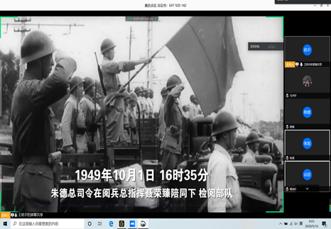 在主持人王钒宇的引领下,入党积极分子依次有序参观建国70周年成就展的网上展馆,认真聆听主持人讲解。成就展采用编年体形式,记载了1949年到2019年期间中华人民共和国走过的光辉历程。走进展览馆,参观者仿佛进入一条时光隧道。一幅幅历史照片、一件件文献实物、一个个精心还原的历史瞬间,在线参观的全体入党积极分子们仿佛看到了往昔英雄和楷模们的奋斗岁月,更坚定了他们走好新时代长征路的信心和决心。