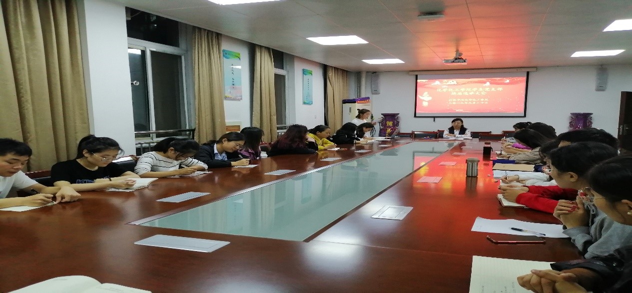 2019年9月20日,我院学生党支部在化工楼W306教室召开换届选举大会,参加本次会议的有化学化工学院学生党支部书记胡泊老师、学生党员及学生预备党员。本次会议由学生党员侯笑笑主持。