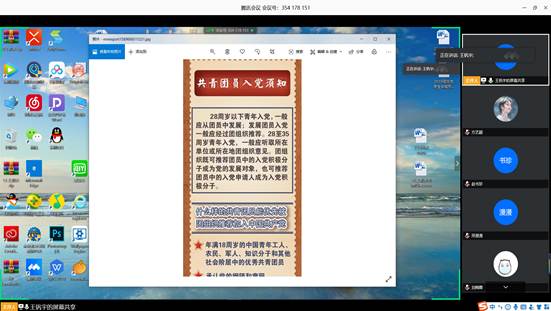 2020年5月16日15:00,我院以线上会议的形式进行第六十三期分党校入党积极分子培训,主持人为化学化工学院18级入党积极分子王钒宇,第六十三期全体入党积极分子在线参加。