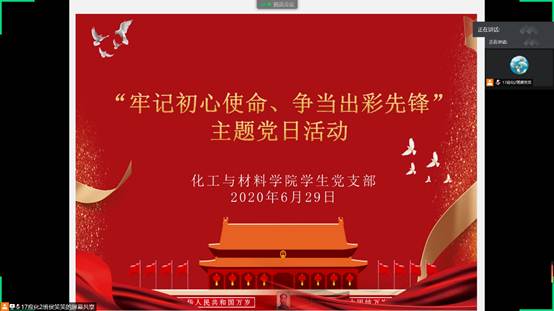 2020年6月29日,我院学生党支部开展了“牢记初心使命,争当出彩先锋”主题党日活动,参加本次活动的有学生党支部书记胡泊老师及全体学生党员。