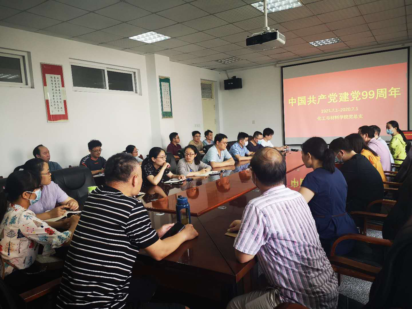 2020年6月30日下午,为庆祝建党99周年,更好推进“不忘初心、牢记使命”主题教育学习活动,化工与材料学院教工党支部组织全体教工党员在A4三楼会议室开展主题党日活动,观看影片《建党伟业》。