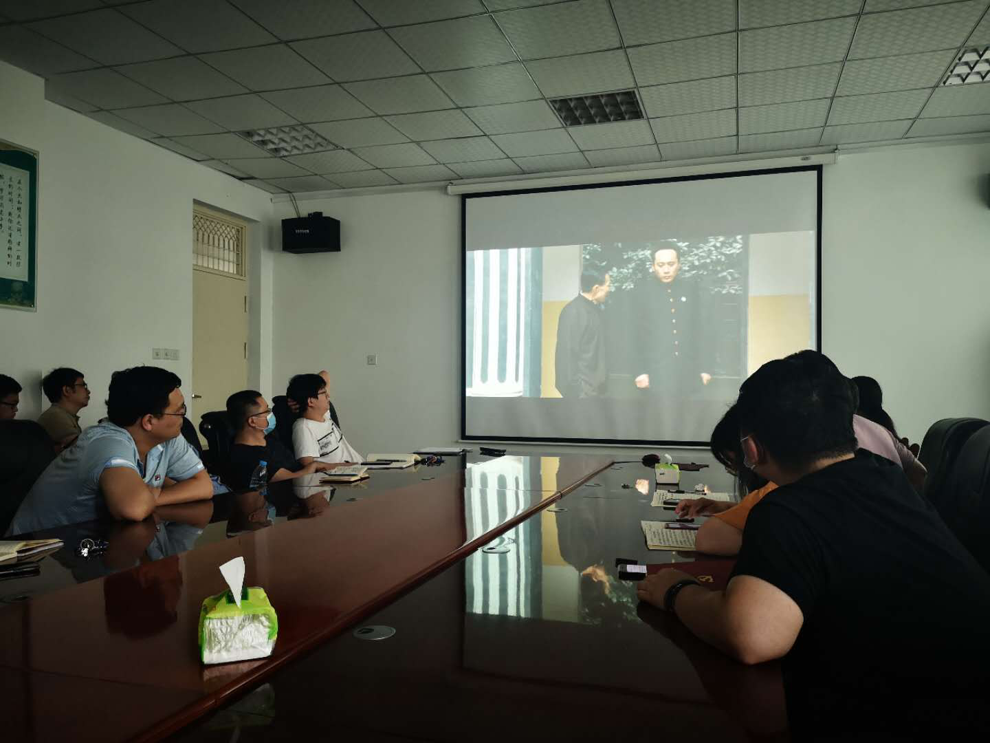 接着,大家观看了电影《建党伟业》,回顾中国共产党成立的艰难历程,重温光辉党史。影片深刻地再现了1911年辛亥革命后到1921年中国共产党成立的历史进程,讲述了毛泽东等第一批中国共产党员在风雨飘摇的年代,为国家的命运和人民的未来前仆后继、赴汤蹈火的历史故事。