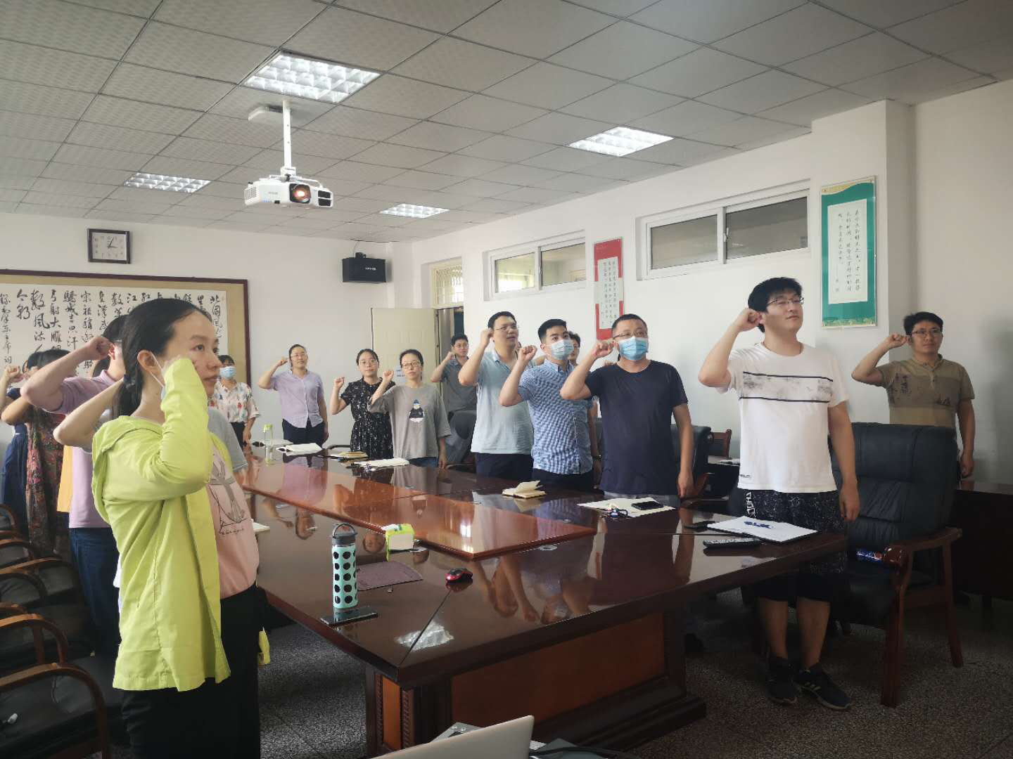 观影之前,在支部书记黄保军老师的带领下,大家庄严神圣地重温入党誓词,铭记入党初心。
