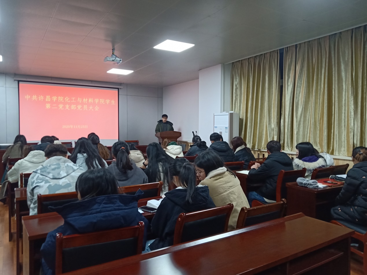 2020年11月25日,我院学生第二党支部在化工楼S302召开许昌学院化工与材料学院学生第二党支部党员大会。参加本次会议的有化工与材料学院学生第二党支部书记于笑寒老师、化工与材料学院学生第二党支部张东琳老师、全体学生党员和发展对象。