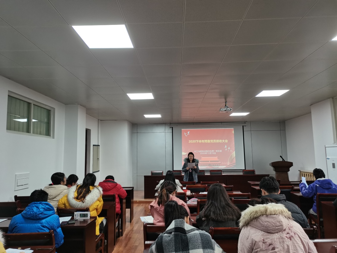 2020年12月10日,我院学生第一党支部召开2020下半年预备党员接收会议。参加会议的有化工与材料学院学生第一党支部书记胡泊老师、全体学生党员及本期党员发展对象。