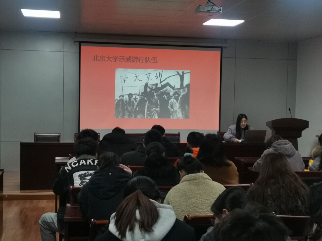 于笑寒老师带领大家一起重温了1935年的“一二•九”运动的那段历史,她讲道:“一二•九运动是抗战动员的运动,是动员全民族的运动,有着重大的历史意义。”还带领全体同学重温了团和党的光辉历史,了解了党组织和团组织在各时期始终站在社会变革的前列,做革命和建设事业的突击队。最后于老师强调:牢记历史、不忘使命,希望大家在今后的生活中发扬先辈们吃苦耐劳、勇于奉献的精神,努力学习,真正的体现出新时代青年的先进性。