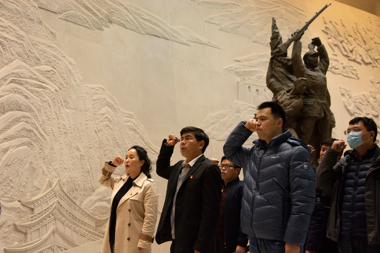 参加活动的全体党员干部整齐列队,庄严肃立,在庄重的国歌声中,集体向烈士纪念碑鞠躬默哀一分钟,以表达对先烈们的哀思。随后,党员同志们参观了革命烈士纪念馆,大家认真聆听了革命先烈无私奉献、为革命胜利战斗不息的那段历史故事,了解了每一张珍贵图片背后的意义,进一步学习了我党百年奋斗发展的光辉历程。