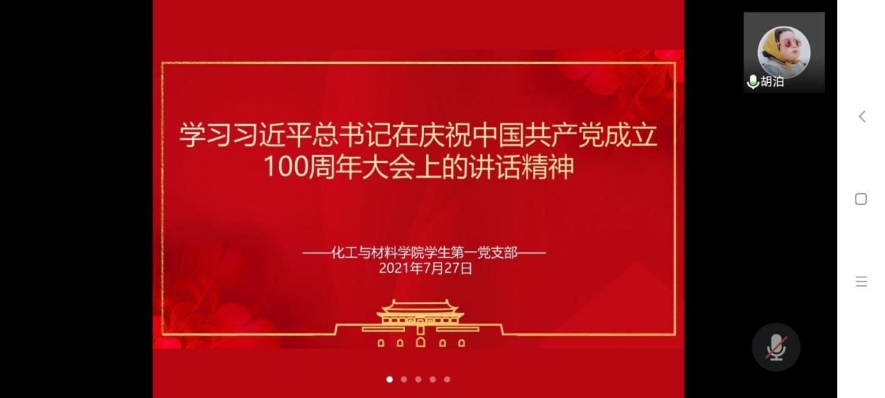 2021年7月27日,我院学生第一党支部在支部书记胡泊老师的带领下,开展“学习习近平总书记在庆祝中国共产党成立100周年大会上的讲话精神”的主题党日活动。锤炼忠诚之心,砥砺担当之为。