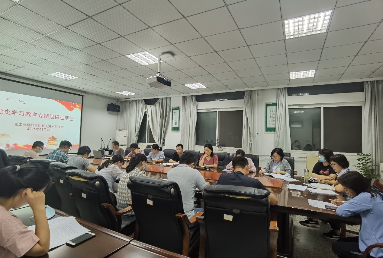 2021年9月8日,我院教工第一党支部在A4楼301会议室召开党史学习教育专题组织生活会。会议由党支部书记黄保军主持,化工与材料学院院长张艳鸽、副书记张学燕以普通党员身份参加会议。