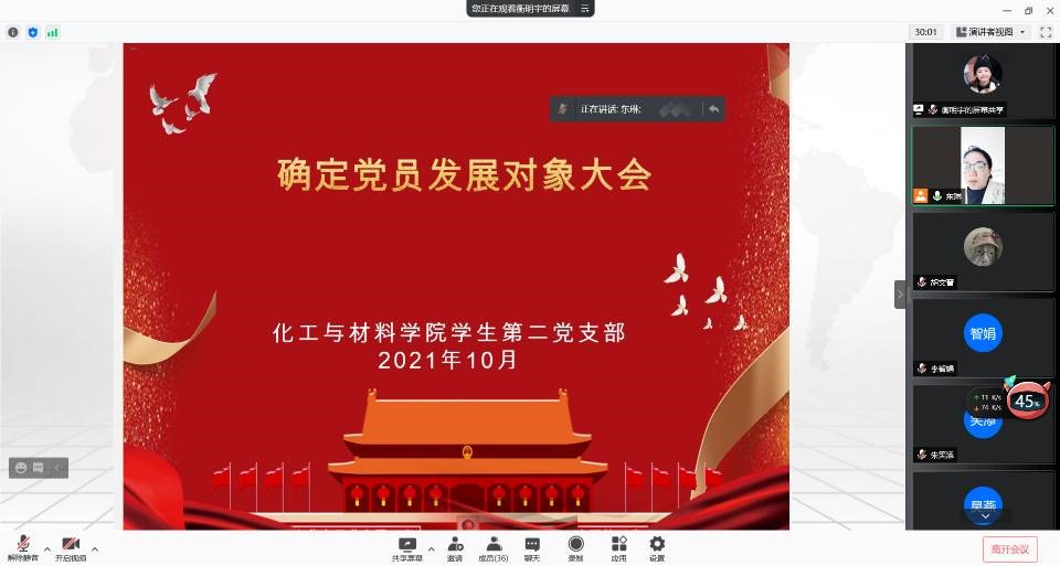 2021年10月22日,我院学生第二党支部以腾讯会议的形式召开了确定党员发展对象支部大会,参加本次会议的有学生党支部书记张东琳老师、全体学生党员及部分群众代表。