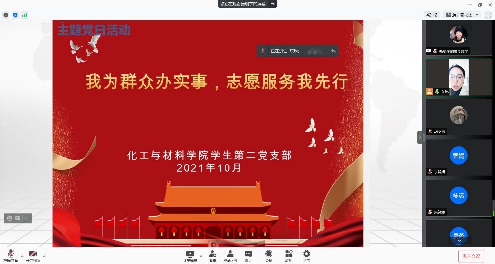 2021年10月23日,我院学生第二党支部以在线会议形式召开了“我为群众做实事,志愿服务我先行”主题党日活动,促使学生党员进一步融入群众,充分发挥学生党员在志愿服务中的先锋模范作用。