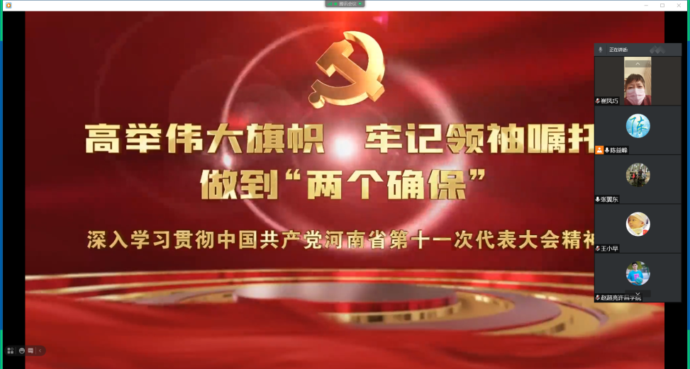 11月24日下午,我院教工第三党支部采用网络会议的形式,集中观看“高举伟大旗帜、牢记领袖嘱托、做到‘两个确保’”河南省第十一次党代会精神主题宣讲。