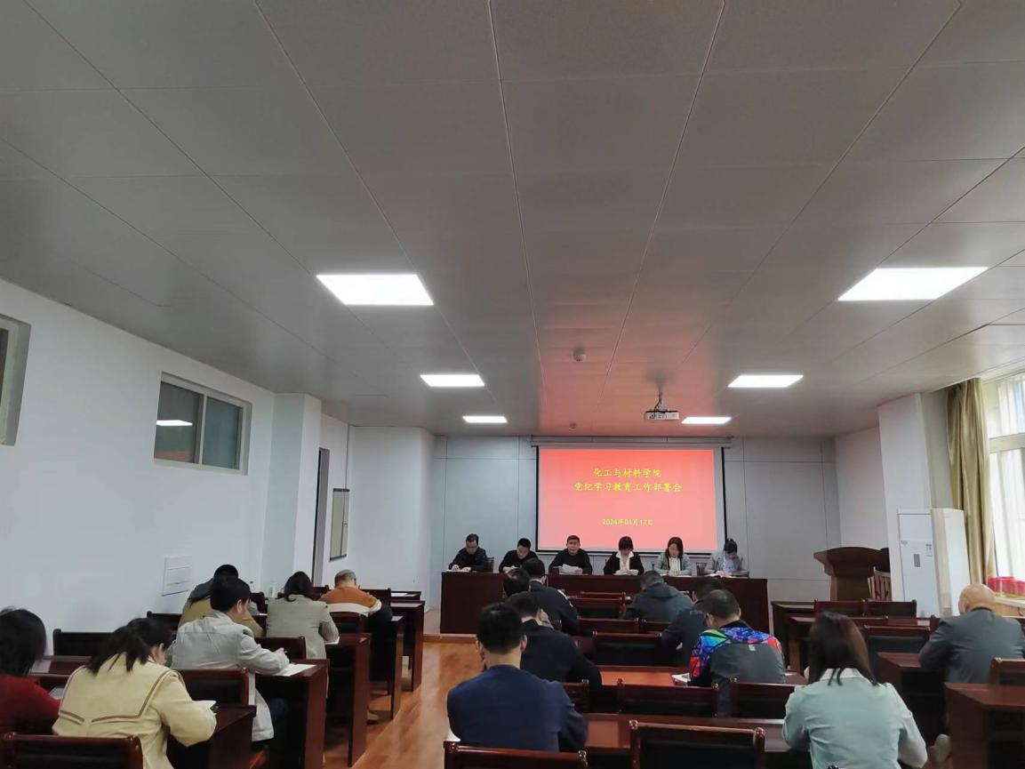 会议传达学习了习近平总书记关于党纪学习教育的重要讲话、重要指示精神,中央《关于在全党开展党纪学习教育的通知》和中央党的建设工作领导小组会议精神、省委常委会研究部署我省党纪学习教育工作会议精神、校党委《关于在全校党员中开展党纪学习教育的实施方案》、《中共化工与材料学院委员会党纪学习教育领导小组关于党纪学习教育的实施方案》。