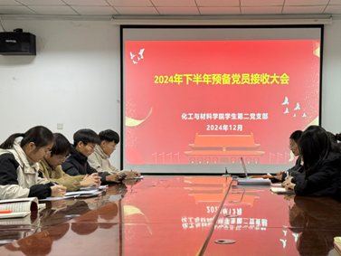2024年12月13日,我院学生第二党支部在A4-301召开2024年下半年预备党员接收大会,此次会议由学生第二党支部书记王濛濛老师主持。