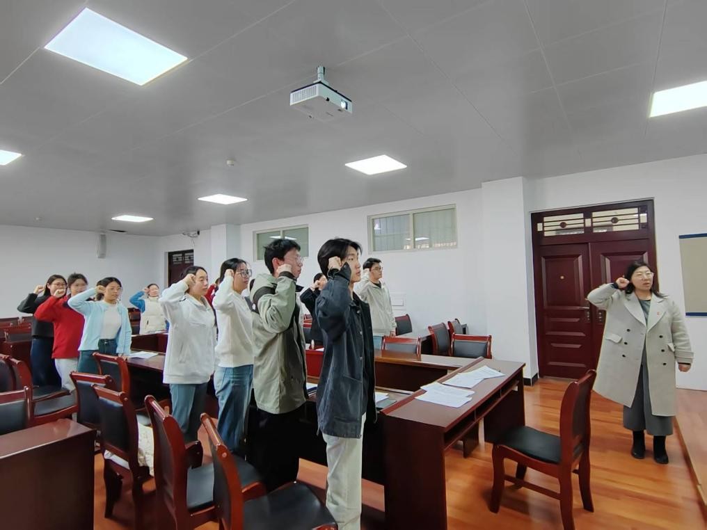 2025年3月21日,我院学生第一党支部在化材楼S302举行预备党员入党宣誓仪式,会议由学生党支部书记胡泊老师主持,全体学生党员参加。