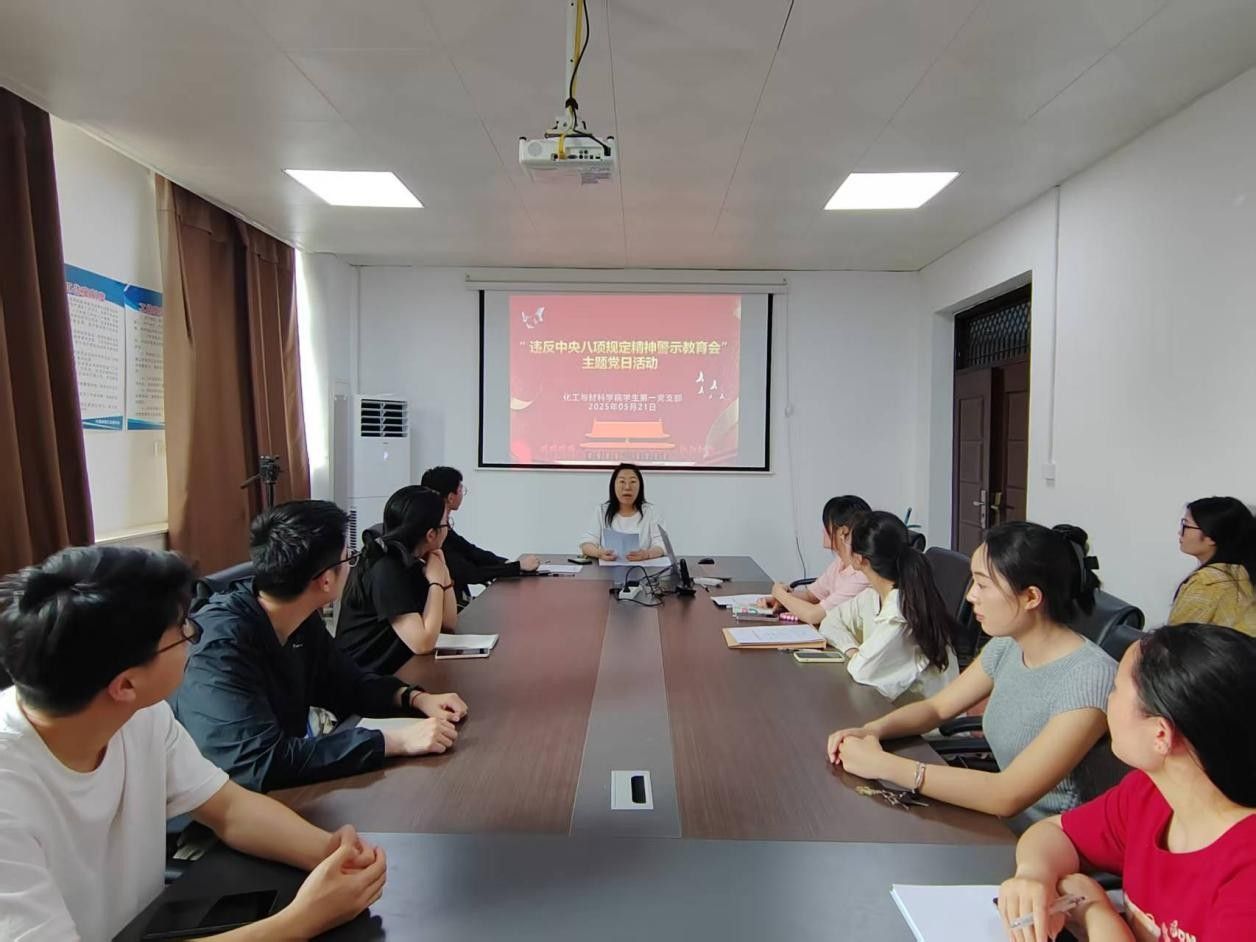 2025年5月21日,我院学生第一党支部在化材楼W312会议室召开“违反中央八项规定精神警示教育会”主题党日活动。学生第一党支部书记胡泊老师及全体学生党员参会。