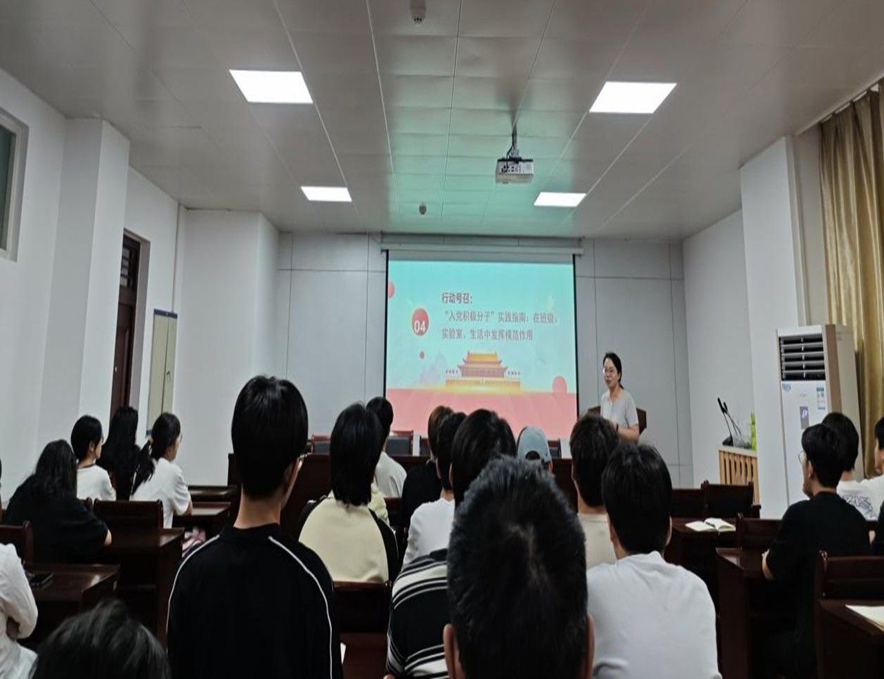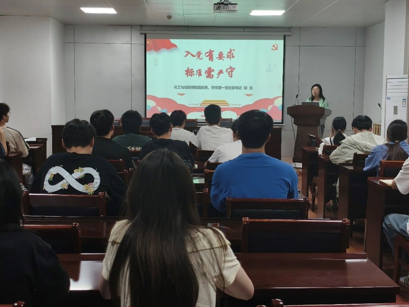 院组织员、学生第一支部书记胡泊老师主讲培训第二讲:大学生入党程序和标准,以及铸牢中华民族共同体意识。从“了解中国共产党”“入党条件”等方面展开讲述,使同学们对入党所需个人能力及行为作风要求、身为共产党员所要秉持的信仰和担负的责任有了更加明确的认知,同时要求作为积极分子要铸牢中华民族共同体意识,促进民族团结。