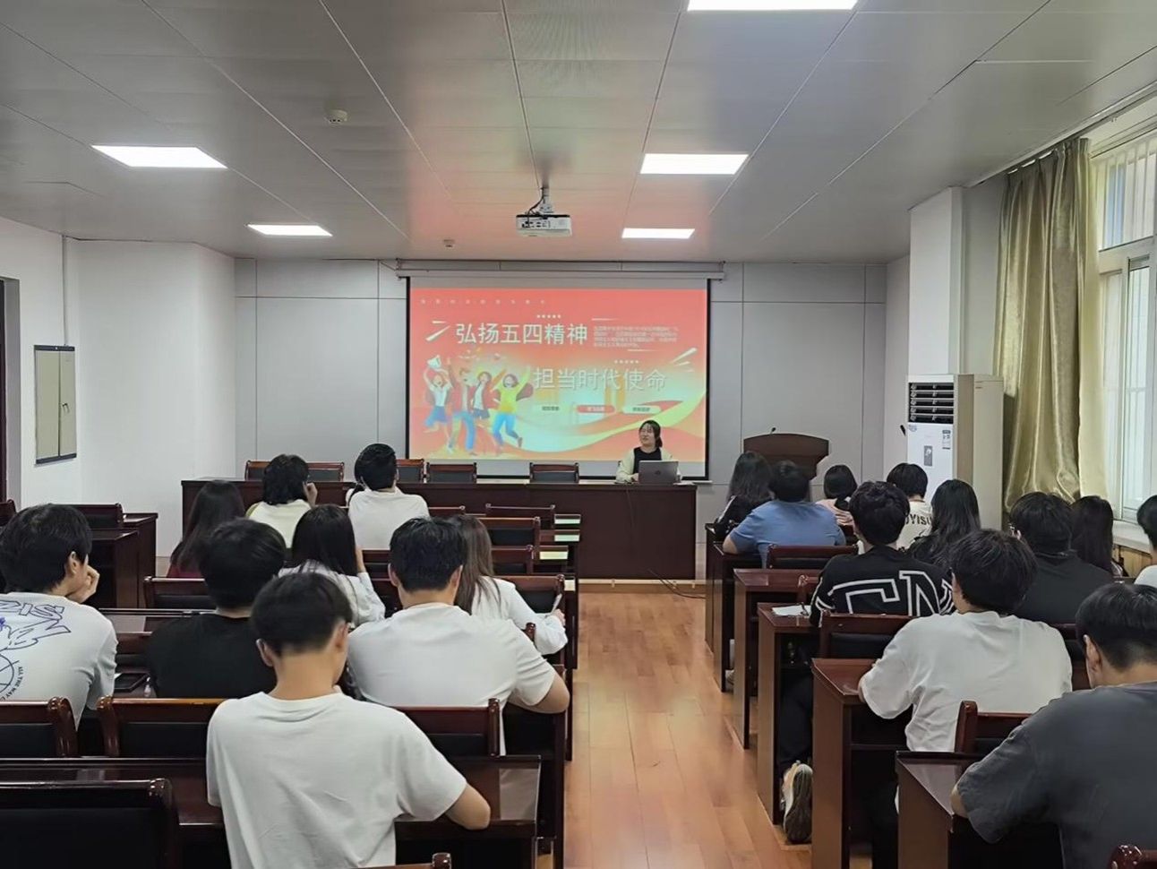 优秀学生党员代表、国家奖学金获得者刘燕鸿主讲了培训第八讲:弘扬五四精神,担当时代使命。刘燕鸿介绍了五四运动的原因、过程以及历史意义,号召大家传承五四精神,研读五四运动中映射出的精神内涵。号召学员们要坚定信念,脚踏实地,将个人发展与国家需求相结合,为国家发展建设添砖加瓦。
