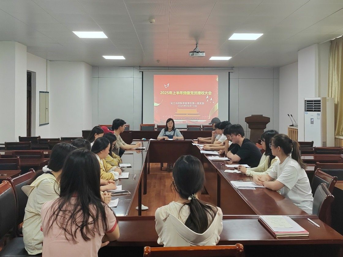 2025年6月13日,我院学生第一党支部在化材楼s-302及线上腾讯会议同步召开2025年上半年预备党员接收大会,本次会议由学生第一党支部书记胡泊老师主持,全体学生党员、本期发展对象参加本次会议。