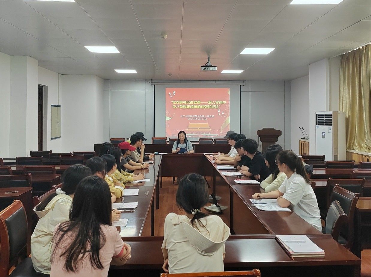2025年6月13日,我院学生第一党支部在化材楼S302进行了“党支部书记讲党课”活动,主题为“集中学习深入贯彻中央八项规定精神的成效和经验要点”。学生第一党支部书记胡泊老师及支部全体学生党员参会。