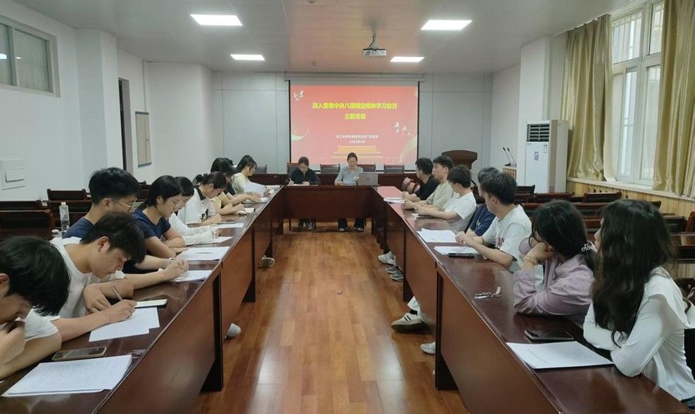 2025年6月13日,我院学生第二党支部在化工与材料学院S302会议室开展深入贯彻中央八项规定精神学习教育主题党课,本次会议由学生第二党支部书记王濛濛同志主持,支部全体党员参会。