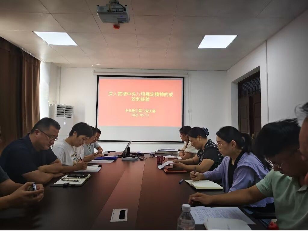 借此契机,党支部书记钞春英同志部署了开展专项整治自查工作。要求全体党员逐条对照《违规吃喝"十严禁"实施细则》开展自查,围绕“科研经费使用规范”“师生服务优化”及“外出请示报告制度执行情况”等具体事项进行了激烈讨论。通过本次自查自纠,全体党员进一步强化了纪律规矩意识,为构建风清气正的教书育人环境奠定了坚实基础。(摄影:郭守杰)
