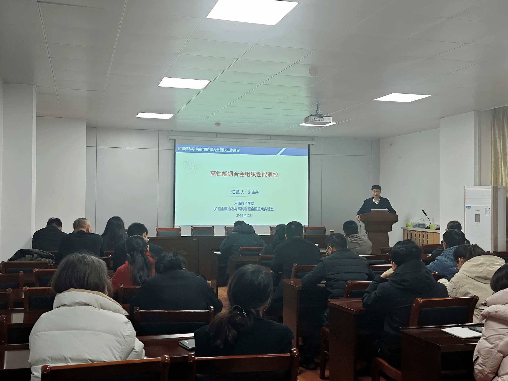 2025年12月10日下午,河南省科学院党委书记、执行院长宋克兴教授应河南省微纳米能量储存与转换材料重点实验室主任郑直教授邀请,来我院开展学术交流,并作题为“高性能铜合金组织性能调控”的专题学术报告。本次报告会由化工与材料学院党委书记许志红主持,学院师生代表现场聆听报告。