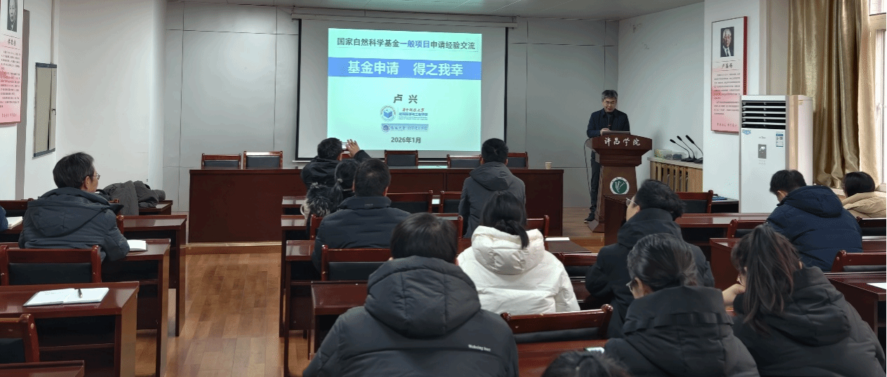 2026年1月26日,华中科技大学/海南大学博士生导师、国家杰出青年科学基金获得者、海外高层次人才卢兴教授受邀到我院进行学术交流暨国家自然科学基金申报指导。报告会由表面微纳米研究所所长何伟伟教授主持,化工与材料学院党委书记许志红教授、表面微纳米材料研究所副所长法文君教授、相关领域教师及联合培养研究生参会交流。