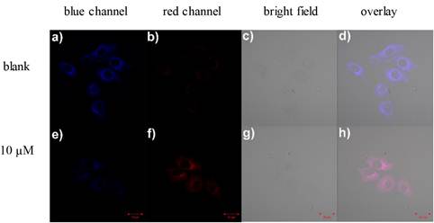 图2 探针标记的Hela 细胞在不同条件下的荧光成像