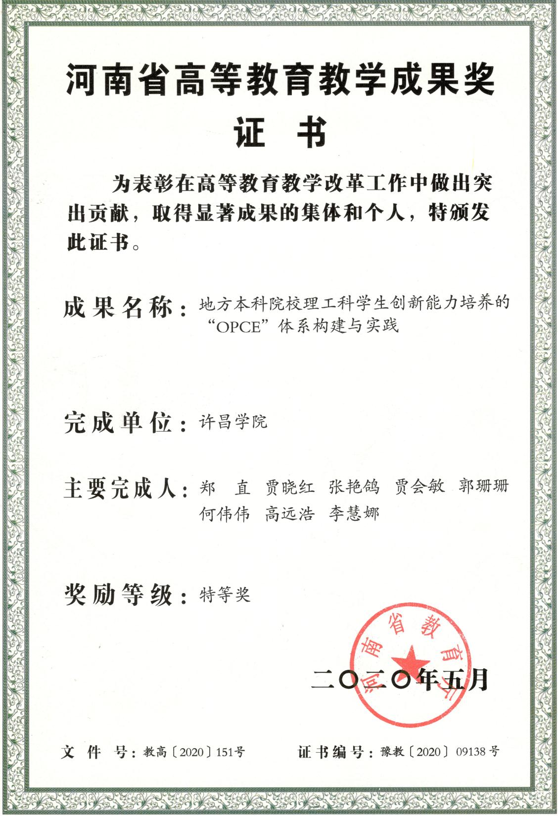 近日,我院郑直教授主持的《地方本科院校理工科学生创新能力培养的“OPCE” 体系构建与实践》荣获河南省高等教育教学成果奖特等奖,获奖等级取得了新突破。
