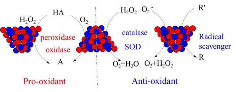 图1:PtRu合金纳米酶抗氧化与促氧化机理图