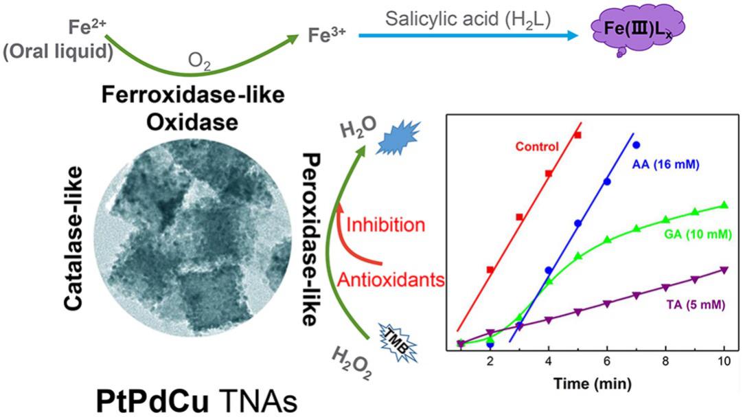 多酶活性增强的三金属PtPdCu纳米材料用于Fe2+检测及抗氧化效应