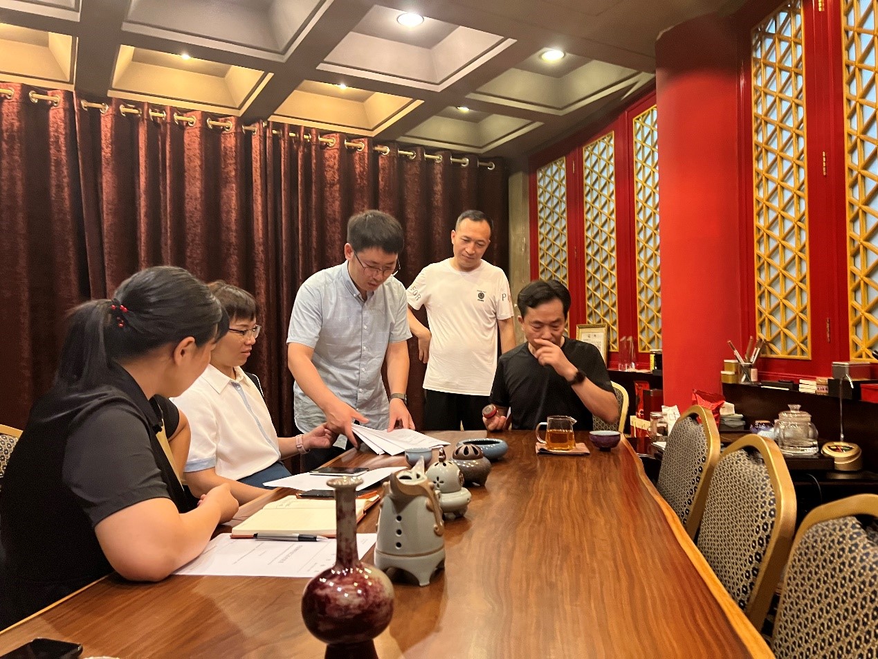 张艳鸽院长一行与孔家钧窑负责人孔春生等进行了座谈,对目前项目进展情况进行了交流,对接下来拟开展的工作进行了详细的规划。双方通过项目为纽带,在科学研究、人才培养、标准制定、共建研发平台等方面继续进行深入合作,共同推进钧瓷文化传承与科技创新。