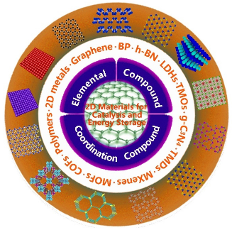 图2 不同类型和配置的2D材料应用于电催化及能源存储