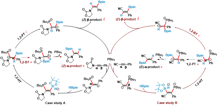 图2 PBu3催化不同取代基炔烃硼氢化反应的一般机理图