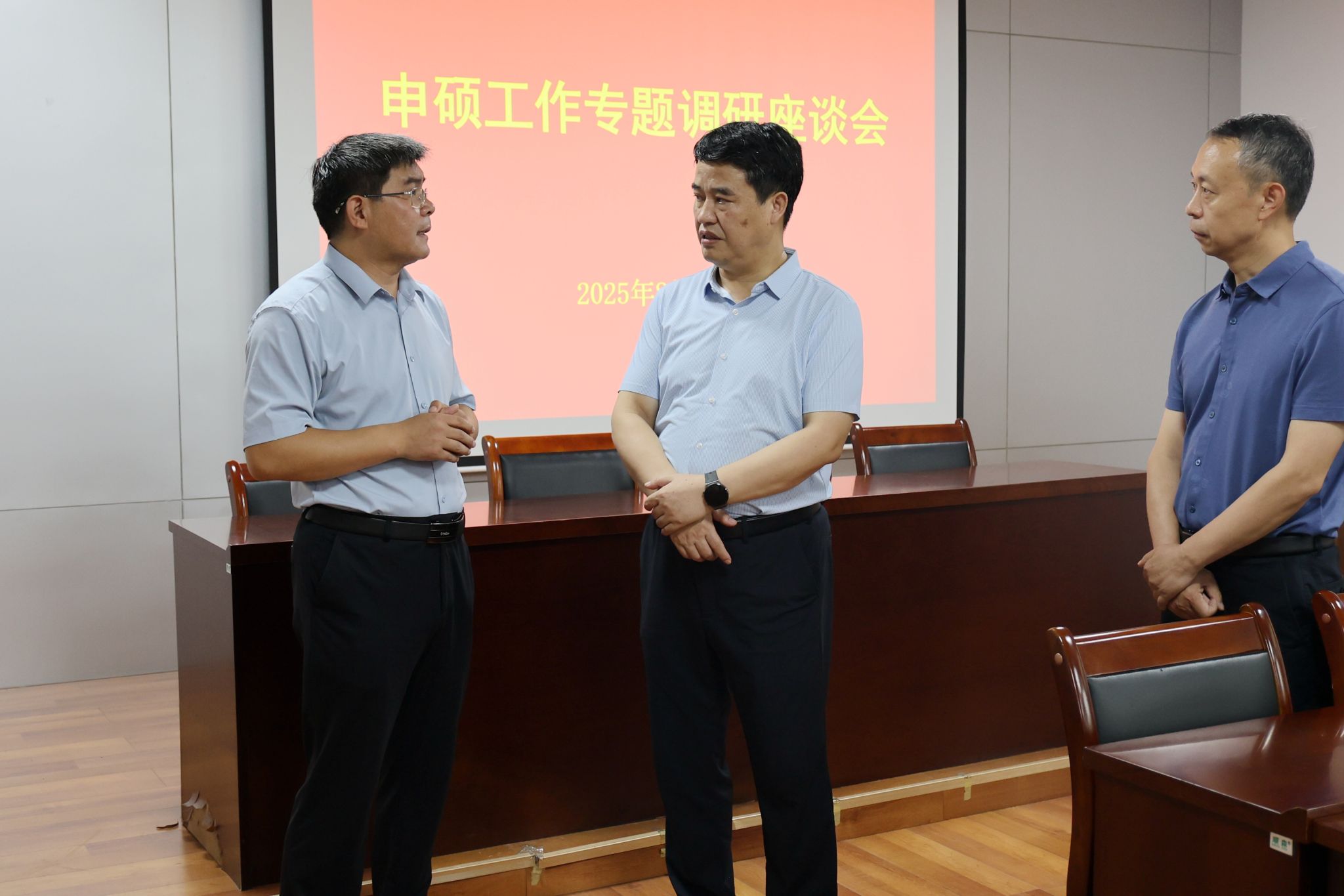 党委办公室、学科建设办公室等职能部门负责人陪同调研,我院领导班子成员、骨干教师代表参加调研会。(摄影:杨哲)