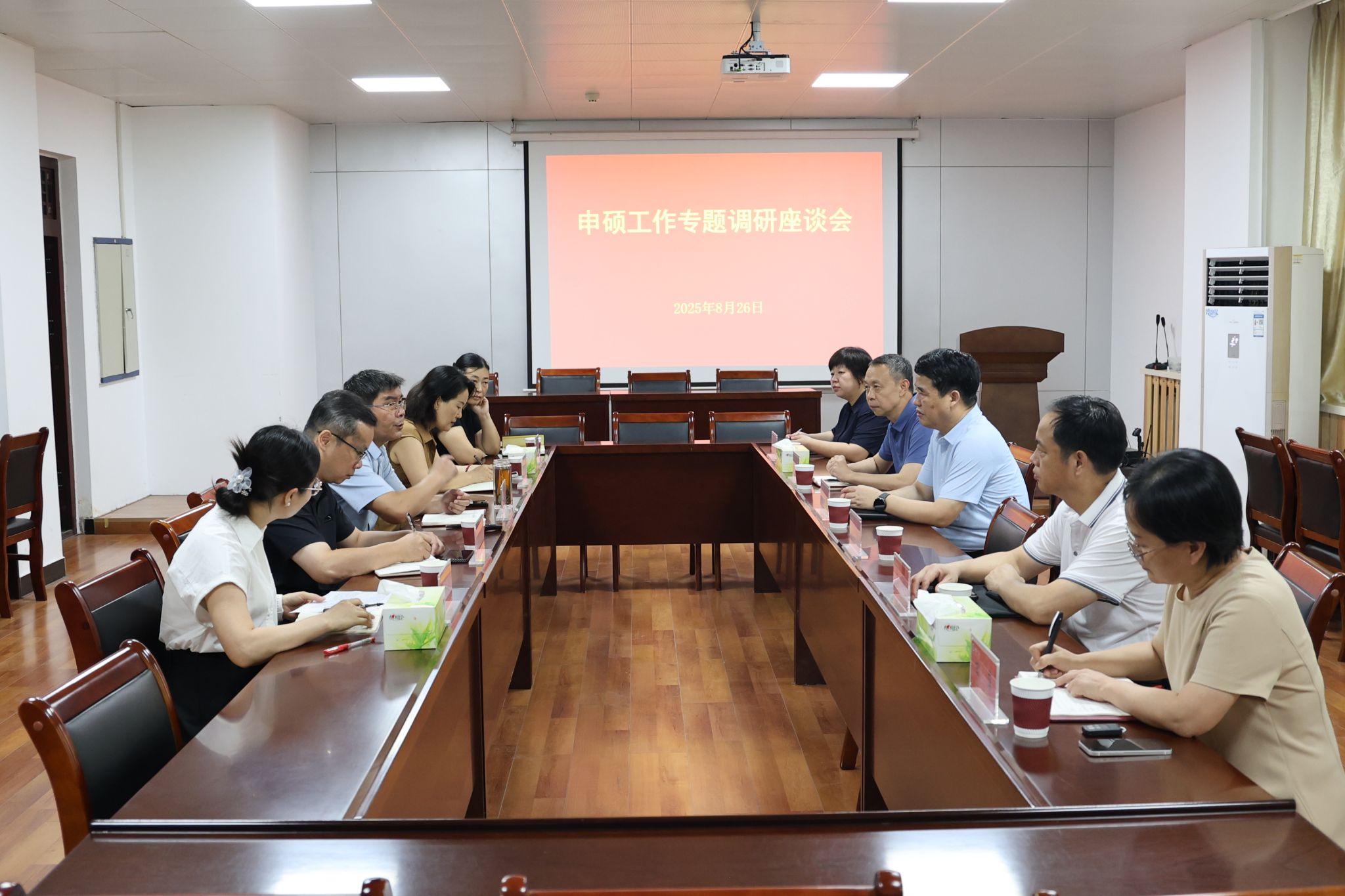 在申硕工作专项座谈会上,我院党委书记许志红就申硕工作的总体进展、现有基础与优势、对标差距与不足、下一步工作计划与亟需学校协调支持的事项等方面进行了全面详实的汇报。