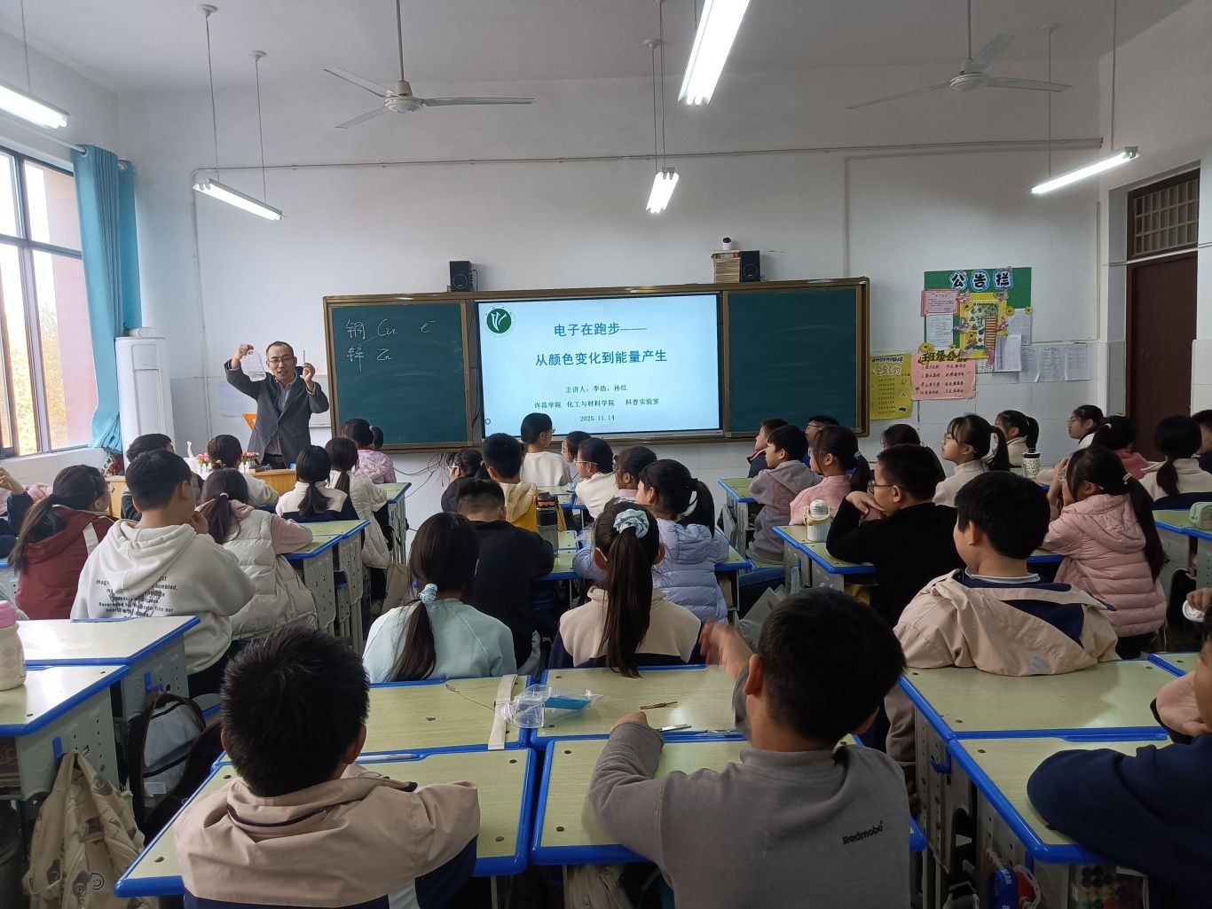2025年11月14日下午,许昌教育局牵头,联合我院打造的“科学实践”系列公益活动在许昌市许州路小学进行,本次活动由许昌学院化工与材料学院李浩、孙红老师担任主讲教师。