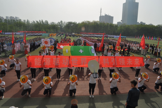 田径场内各院系方队陆续到达其对应位置,伴随着嘹亮的音乐响起,主持人宣布运动会正式开始。首先是各院系方阵展示,各个院系可谓青春靓丽,百花齐放,让人大饱眼福。我院结合院系专业特色发挥创意,将电池、电子等元素融入到方阵造型中,新颖独特;气势磅礴的武术健身操;还有弘扬中国历史文化的武术表演,全面展现了我院的良好形象。