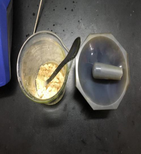 在7月2日的早晨,队员早早的来到实验室,等待老师的到来,听从老师的指导安排,取出干燥箱中的凝胶。这样的成功离不开同学们的齐心协力。就在昨晚,还有同学留守在实验室,防止出现特殊情况。经过一夜的干燥,溶胶转变成凝胶十分成功,淡黄色的成品和之前预想的结果基本达成一致,同学们对这一结果感到十分激动,但是接下来还会有更加严峻的挑战,在等待着他们。