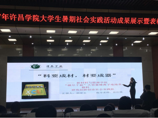 在成果展示环节,我院“‘锂’尽千新”大容量锂离子电池负极材料研究创新社会实践队,以“料要成才,材要成器”为主题,上台展示了我院的优秀实践成果。
