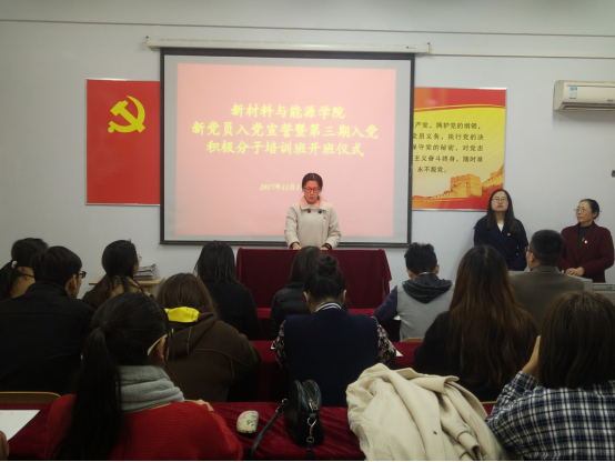11月17日,我院于A4党团活室召开新党员入党宣誓大会暨分党校第三期入党积极分子培训班开班仪式。院党总支书记崔凤巧、老学生党员同志、2017年上半年新接收的预备党员与分党校第三期入党积极分子参加了此次会议,会议由周婷婷老师主持。