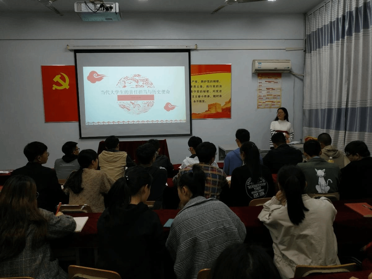 2018年11月4日晚上6:30,我院第五期分党校入党积极分子培训班第八讲在四楼党团活动室进行。本次课程的主讲人为新材料与能源学院学生党支部学生党员陈璐同志,授课的主题是当代大学生的责任担当与历史使命。