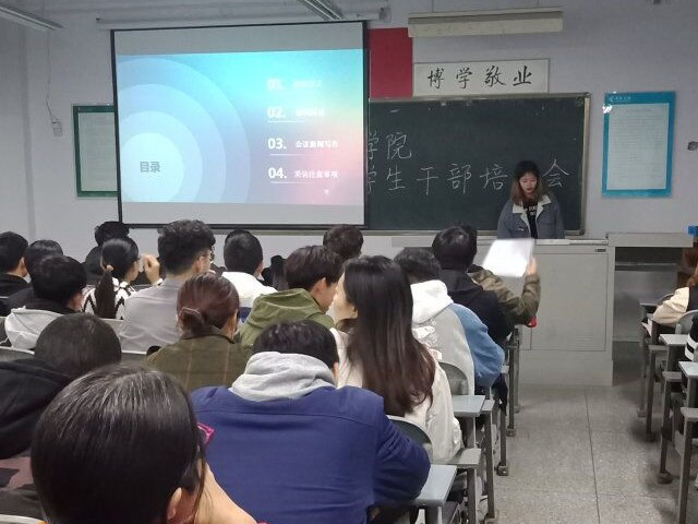 11月25日,城乡规划与园林学院副主席薛明辉以学生干事成绩普遍较低为出发点,向大家分析了学生从干事到部长后的心理变化,并强调做人要讲原则,己所不欲,勿施于人。信息工程(软件职业技术)学院主席郝飞则从如何进行学业规划,如何处理学习与工作的关系这几个方面进行了讲解。经过这次培训,提升了我院学生干部的自身综合素质,使学生干部队伍整体思想水平和工作水平得到进一步提升。