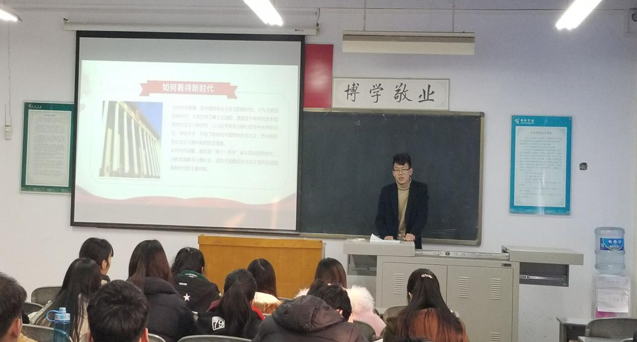 12月18日上午,我院18级辅导员侯凯老师面向我院18级各班班委及寝室长开展团课。本次团课以我校校名、校徽、校训等的由来为出发点,同学们讲解我校的文化底蕴。侯老师围绕贯彻习近平新时代中国特色社会主义思想和党的十九大精神引导班干部学习时代精神,做有担当、负责任的新时代青年,切实增强“四个意识,四个自信”。团课最后,侯老师希望大家以新时代对新青年大学生的要求来严格要求自己,在生活中不断地汲取新的知识,在学习中合理安排时间,做到活到老,学到老。