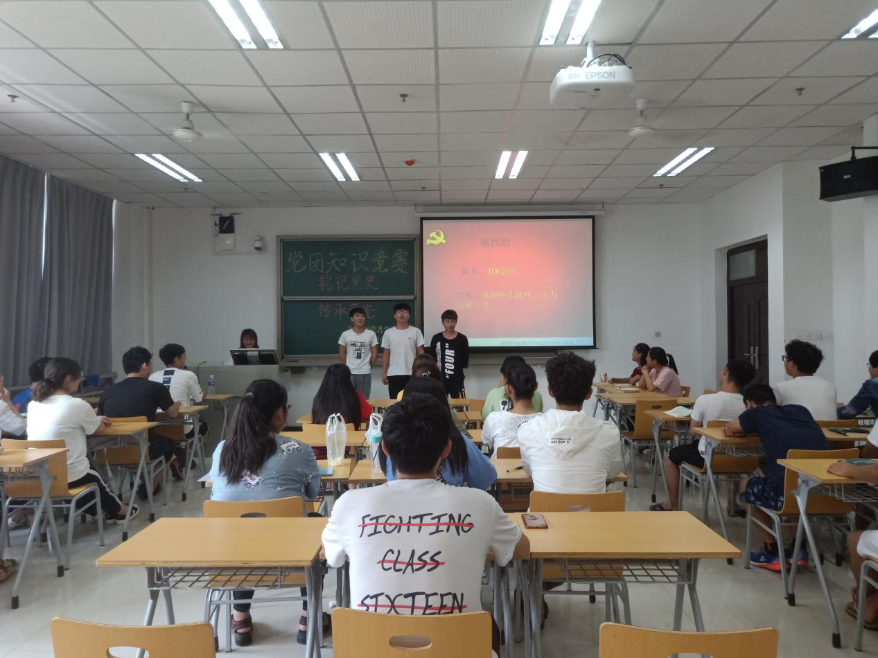 活动伊始由团支书李智娟向同学们介绍竞赛流程,班长鞠玮航分别介绍班级五支参赛队伍。比赛采取初赛决赛制,竞赛内容是党团小知识。经过初赛“舍我其谁”、“当机立断”、“谁与争锋”三个环节的激烈比拼后有三支队伍进入决赛。在老师与同学们的见证下,三支队伍在决赛中大显身手,角逐出了一二三名。活动最后由校党委宣传部李铮老师对此次活动进行总结并为获奖队伍颁发奖状。