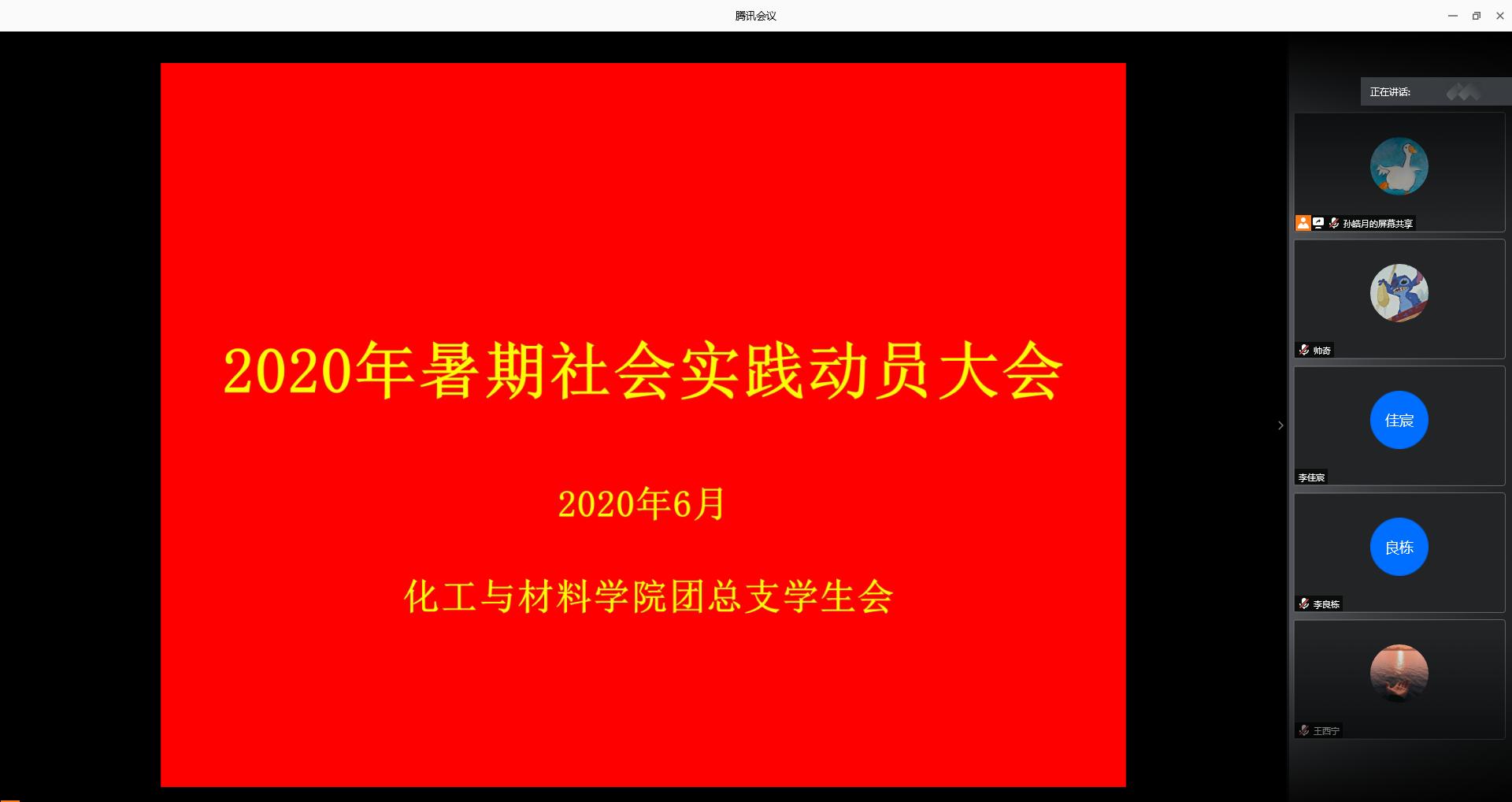 会议伊始,由18级孙皓月同学对本次暑期社会实践进行详细介绍,并对我院的八个社会实践项目的具体内容进行简单的介绍和阐述,目的在于告诉大家要根据自身条件理性选择实践项目。紧接着,18级李奉蔚同学对本次实践活动的宣传工作进行讲解,她强调:由于疫情原因,此次实践活动的线上宣传工作尤为重要,希望同学们注重宣传、用心宣传,将自己的活动广泛推广。最后,由侯凯老师针对参加社会实践中安全、生活等方面向同学们提出了的具体要求,并提醒大家要切实注意人身和财产安全。