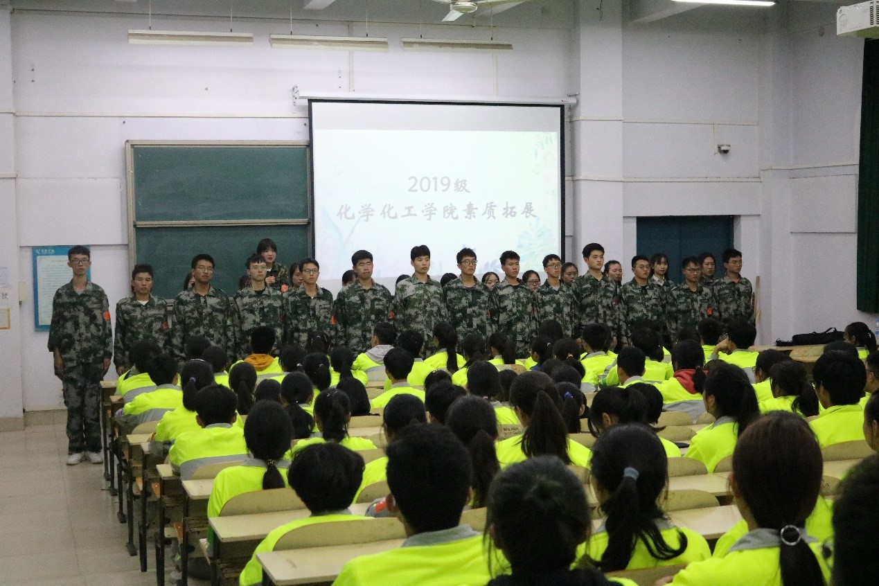 2019年10月26日,化学化工学院于宁园篮球场举办素质拓展活动。总教官王龙飞、各队教官及政委组织带领全体2019级新生参加活动。